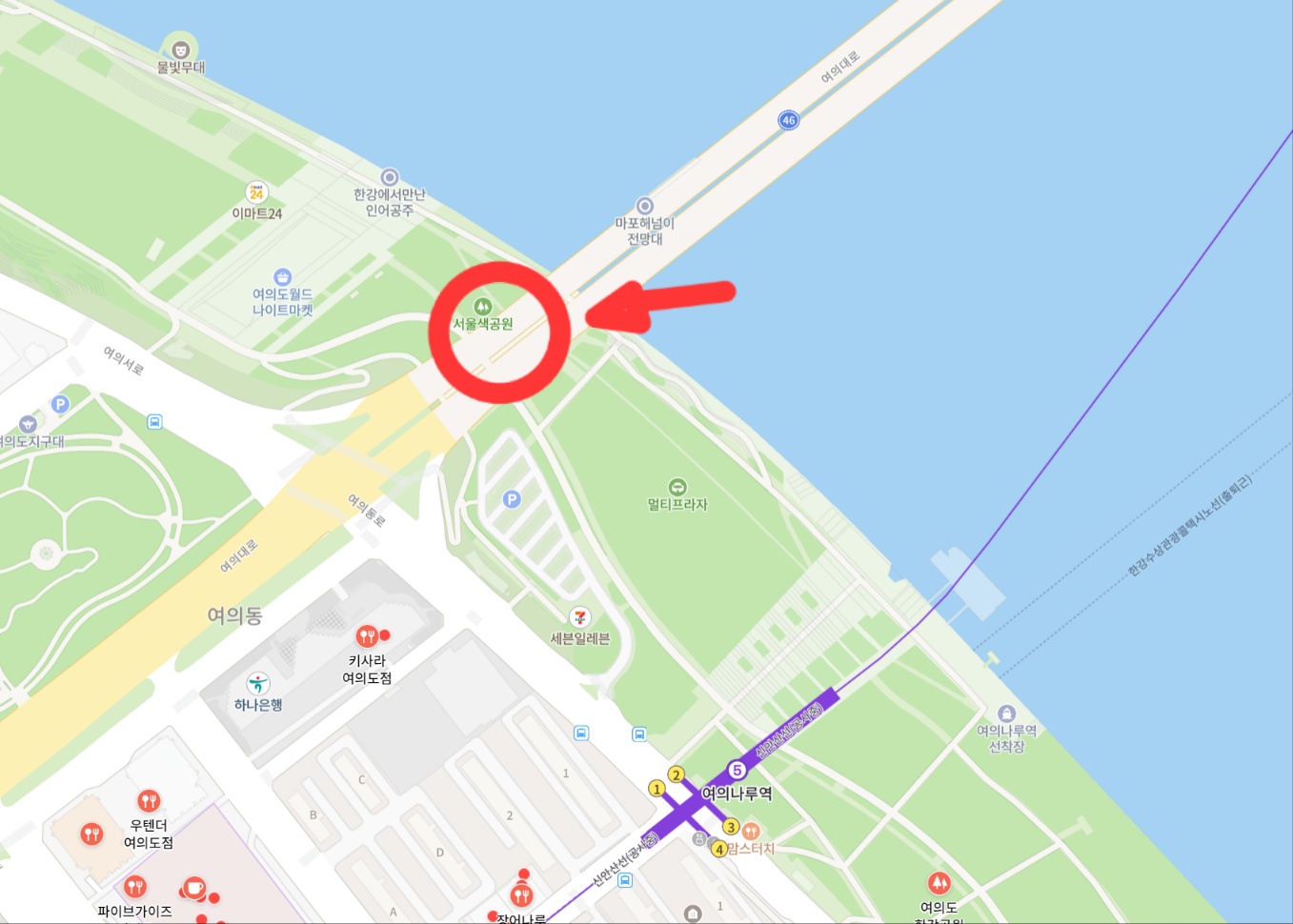 여의 나루역 2번출구에서 지도보고 쭉 오셔서