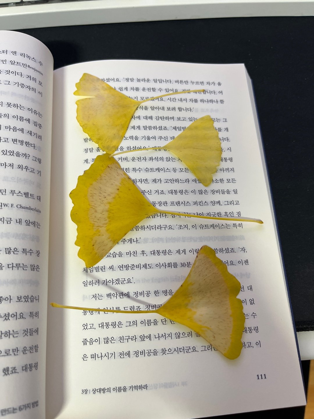 다녀오는 길에 단풍이 많아서 몇 개 따다가 책에 끼워서